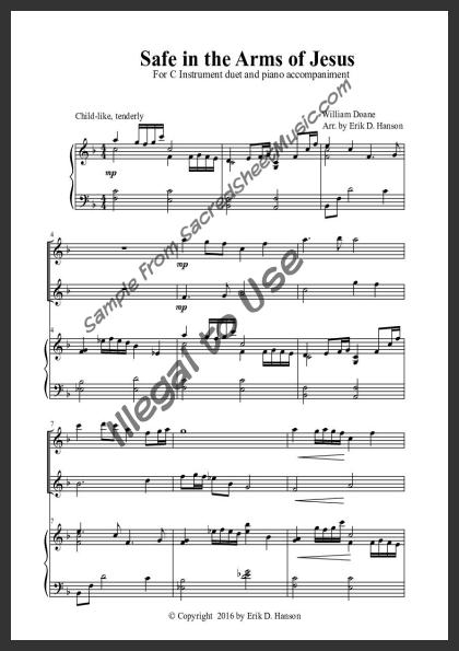This arrangement conveys the childlike trust and faith that come from being safe in the arms of Jesus. The instrumental parts are included in the PDF file.