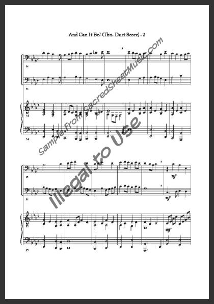Includes the full score with piano accompaniment and separate duet parts for Trombone I and II.