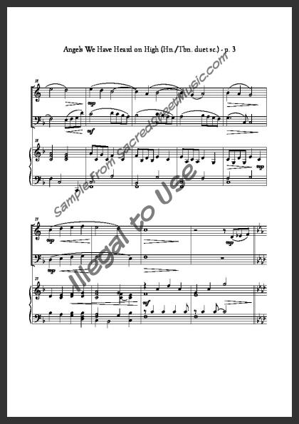 Includes the full transposed score with piano accompaniment and separate duet parts for Horn in F I and Trombone II.