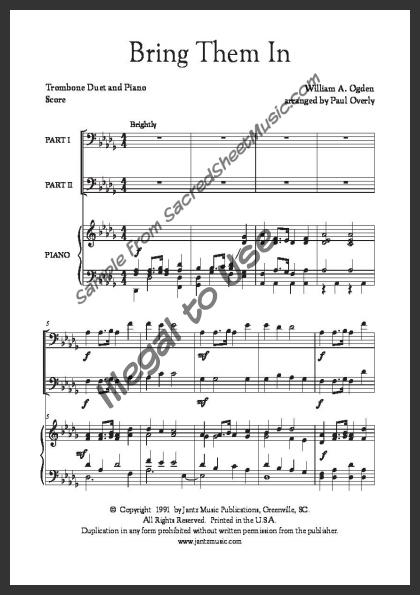 Includes the full score with piano accompaniment and separate duet parts for Trombone I and II.