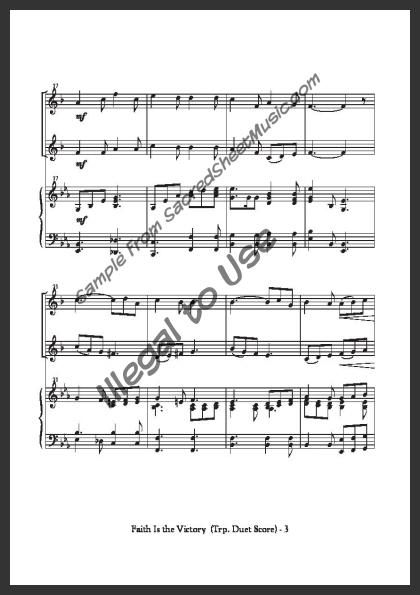 Trumpet duet with piano accompaniment. An energetic, rousing arrangement that rejoices in the truth that ‘Faith is the victory that overcometh the world.’ Moderately Advanced level of difficulty.