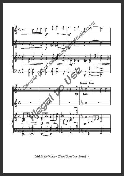 Mixed woodwind duet for Flute and Oboe with piano accompaniment. An energetic, rousing arrangement that rejoices in the truth that ‘Faith is the victory that overcometh the world.’ Moderately Advanced level of difficulty.