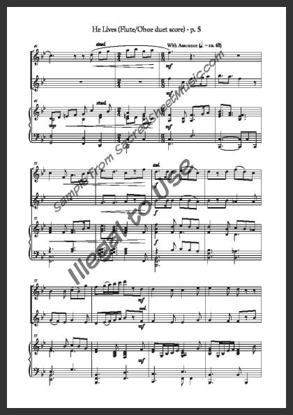 Mixed woodwind duet for Flute and Oboe with piano accompaniment A bright, uplifting arrangement that celebrates Christ’s resurrection – ‘I serve a risen Savior.’. Moderately Advanced level of difficulty.