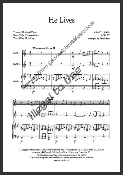 Trumpet duet with piano accompaniment A bright, uplifting arrangement that celebrates Christ’s resurrection – ‘I serve a risen Savior.’. Moderately Advanced level of difficulty.