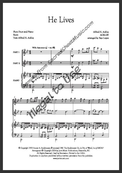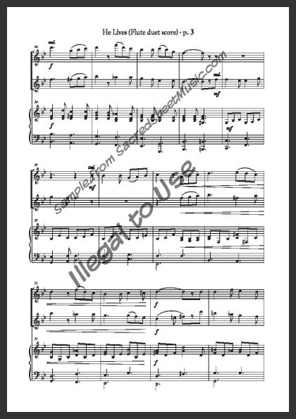 Flute duet with piano accompaniment. A bright, uplifting arrangement that celebrates Christ’s resurrection – ‘I serve a risen Savior.’. Moderately Advanced level of difficulty.