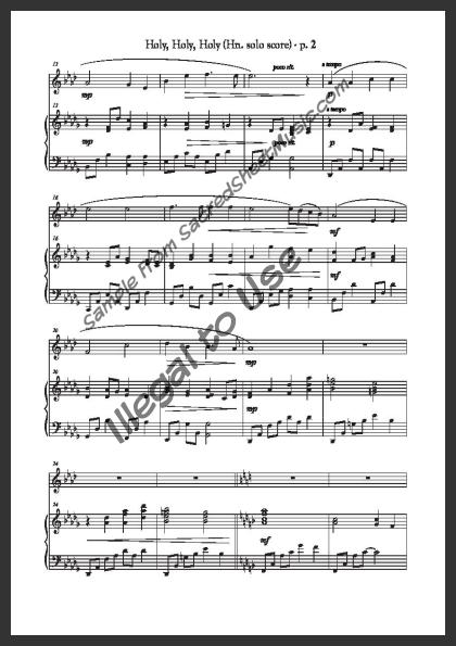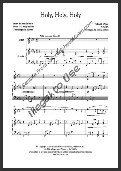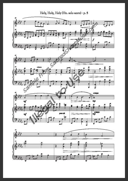 Horn solo with piano accompaniment. A beautiful, flowing arrangement of this older hymn praising our holy and merciful ‘Lord God Almighty!’ Moderate level of difficulty.