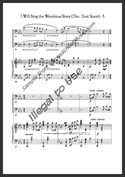 Trombone duet with piano accompaniment. An energetic arrangement of this song of testimony of salvation. Moderate level of difficulty.