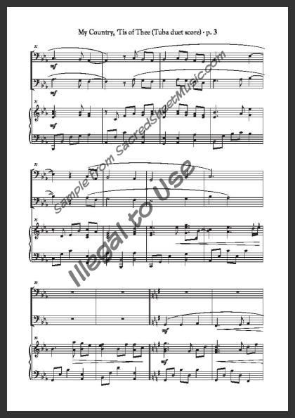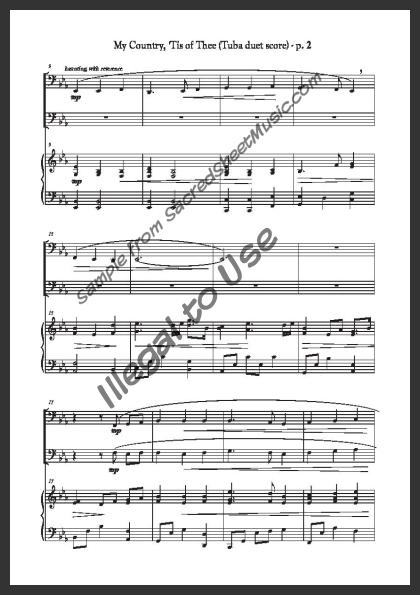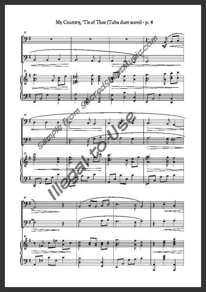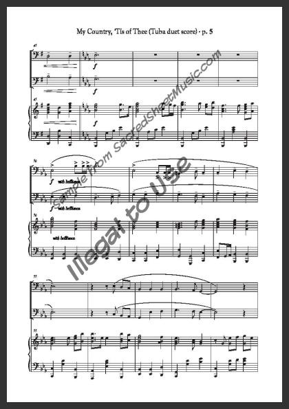 Tuba duet with piano accompaniment. A powerful, fresh setting of this popular American patriotic song – “America.”. Moderately level of difficulty.