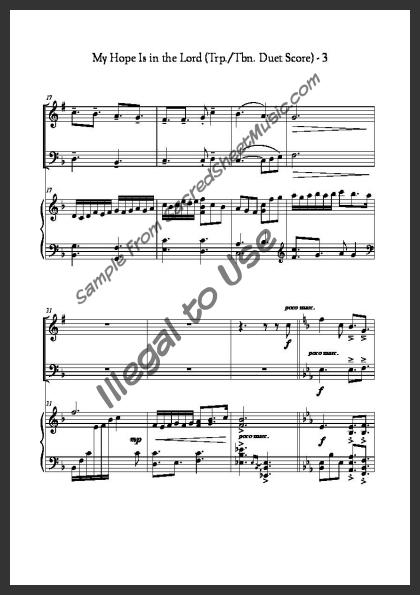 Includes the full transposed score with piano accompaniment and separate duet parts for Trumpet I and Trombone II.