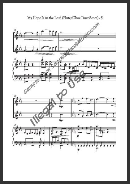 Includes the full score with piano accompaniment and separate duet parts for Flute I and Oboe II.