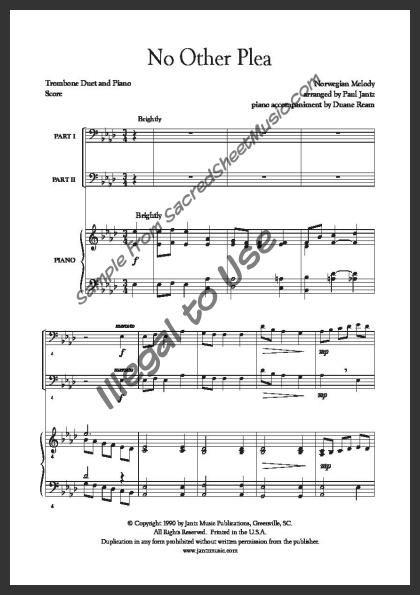 Includes the full score with piano accompaniment and separate duet parts for Trombone I and II.