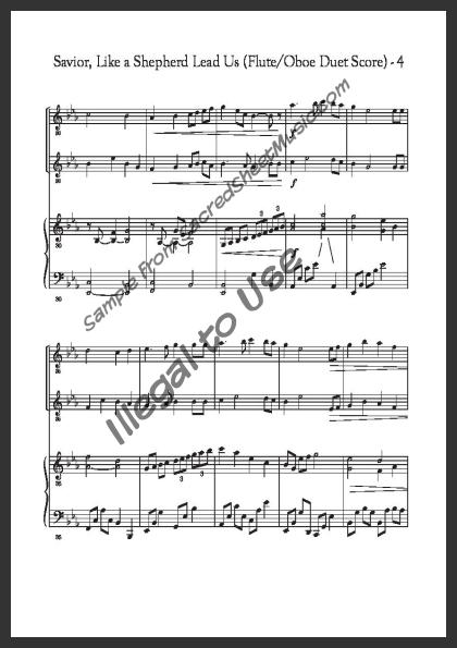 Includes the full score with piano accompaniment and separate duet parts for Flute I and Oboe II.