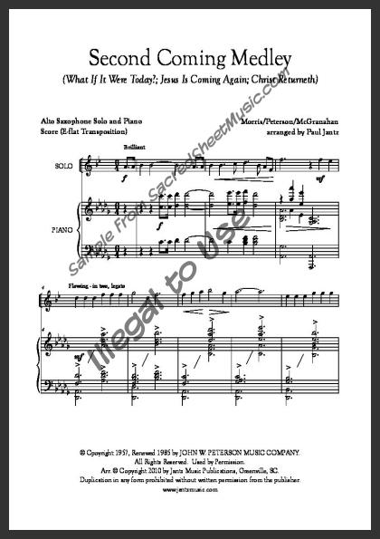 Alto Saxophone solo with piano accompaniment. A flowing, energetic setting of three older hymns on the second coming – What It It Were Today?, Jesus Is Coming Again, and Christ Returneth. ‘Marvelous message we bring …. Jesus is coming again!’ Advanced level of difficulty.