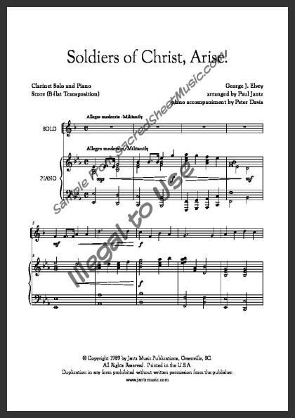 Clarinet solo with piano accompaniment. ‘Soldiers of Christ, arise …… Strong in the strength which God supplies thru His eternal Son.’ Moderately Easy level of difficulty.