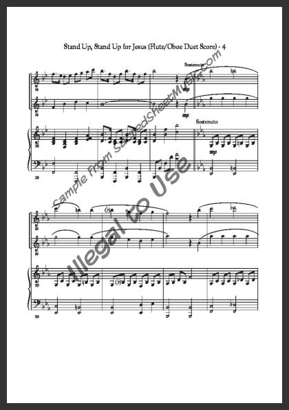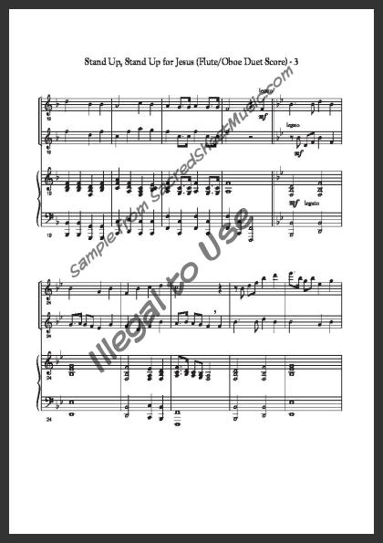 Mixed woodwind duet for Flute and Oboe with piano accompaniment. A rousing duet using both the Webb and Geibel hymn tunes. Moderate level of difficulty.