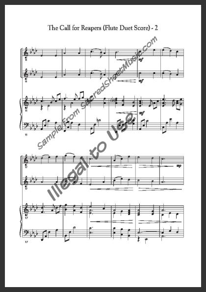 Flute duet with piano accompaniment. A beautiful, flowing arrangement of this older missions hymn: ‘Lord of harvest, send forth reapers! Hear us, Lord; to Thee we cry. Send them now the sheaves to gather, ere the harvest-time pass by.’ Moderate level of difficulty.