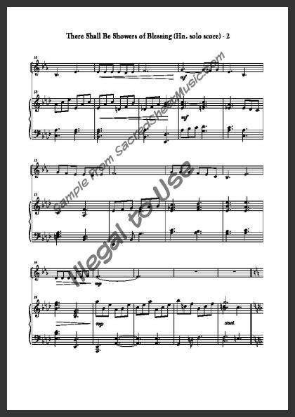 Horn solo with piano accompaniment. A simple setting of this older hymn of revival – “Now as to God we’re confessing, Now as on Jesus we call! ... Showers of blessing we need …” Moderately Easy level of difficulty.