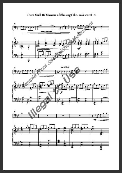 Trombone solo with piano accompaniment. A simple setting of this older hymn of revival – “Now as to God we’re confessing, Now as on Jesus we call! ... Showers of blessing we need …” Moderately Easy level of difficulty.