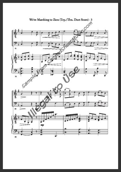 Includes the full transposed score with piano accompaniment and separate duet parts for B-flat Trumpet I and Trombone II.