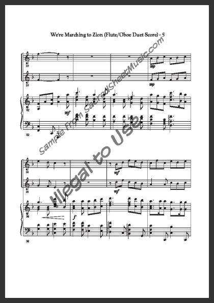 Includes the full score with piano accompaniment and separate duet parts for Flute I and Oboe II.