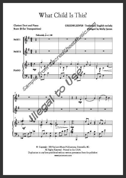 Clarinet duet with piano accompaniment. A beautiful, flowing setting of this popular Christmas favorite. Moderate level of difficulty.