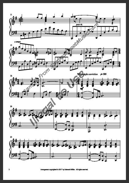 As simple as it is beautiful, this peaceful hymn will soothe and inspire. Written in the key of G, for late intermediate/early advanced pianists.