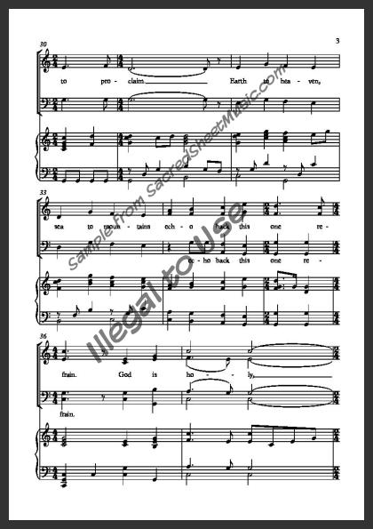 This work is conceived as a sacred symphonic anthem, intended to convey the grandeur of God's holiness through restraint and musical pacing. The impact of this piece will be felt not through constant volume, but through dynamic expression and delayed climactic release. Singers are encouraged to sing long phrases. adhere to clean cutoffs, and reverent pacing, allowing silence and resonance to carry theological weight. The work unfolds from mystery to proclamation, from the heavenly hosts extoling God in all His power and majesty to an invitation to participate in celebrating Christ's triumph. It finally settles into a reverential moment of unashamed worship, an Alleluia of radiant stillness.