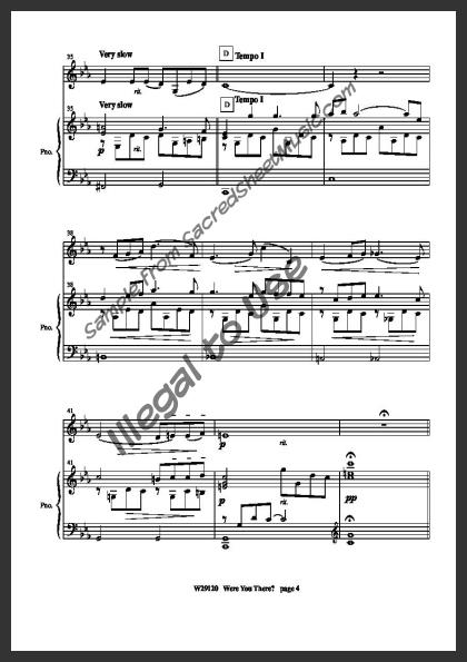 A Rich Heffler Music arrangement. This solo is presented in a reverent setting in a minor key. The middle section shifts momentarily to a major mode and then quickly back to a minor mode. The soloist is provided the opportunity to express with a fluid cadenza which gives way to a final statement of harmonic shifts coming to a solemn close.
